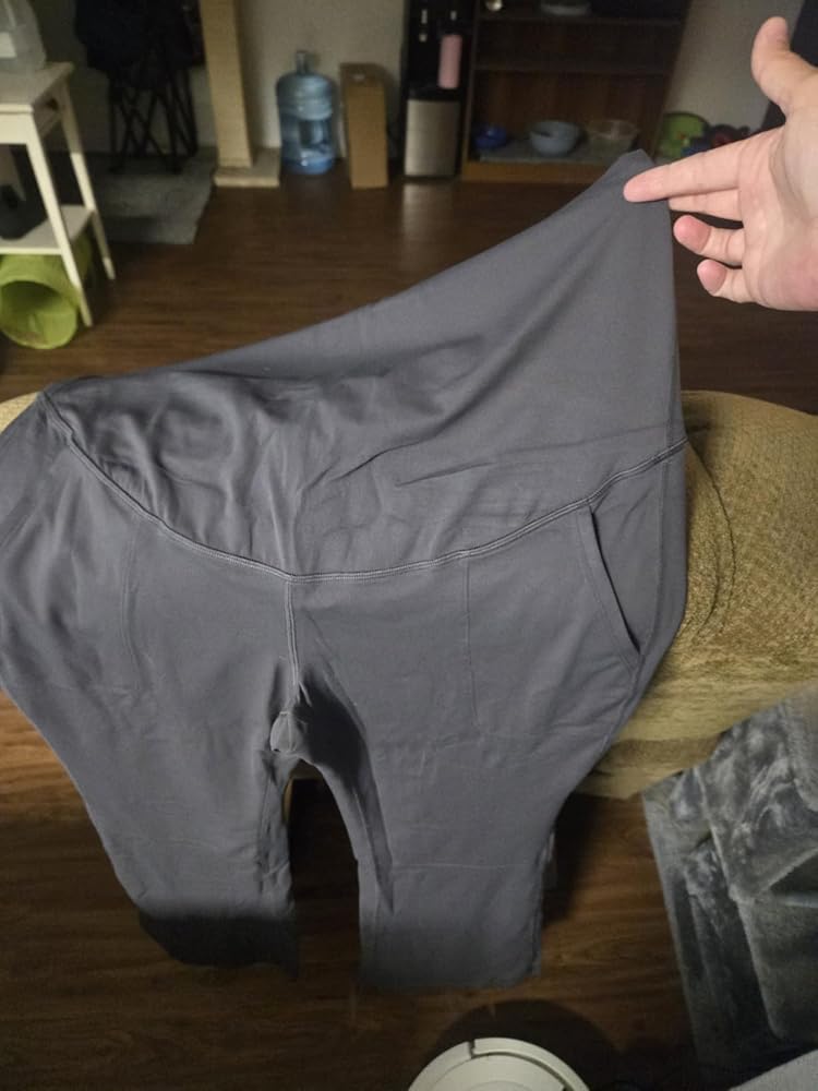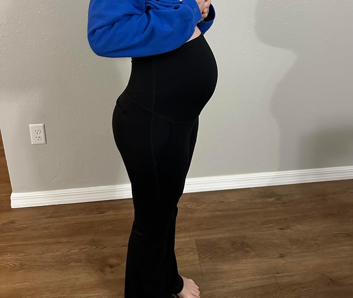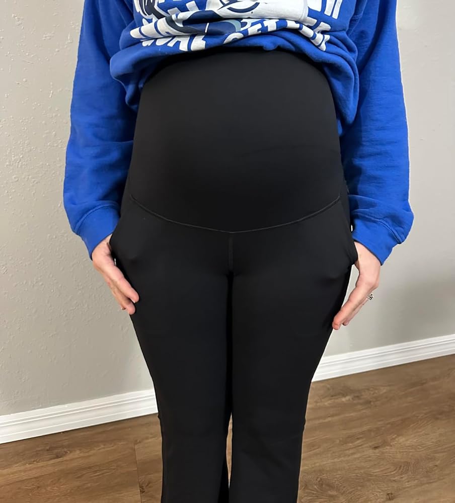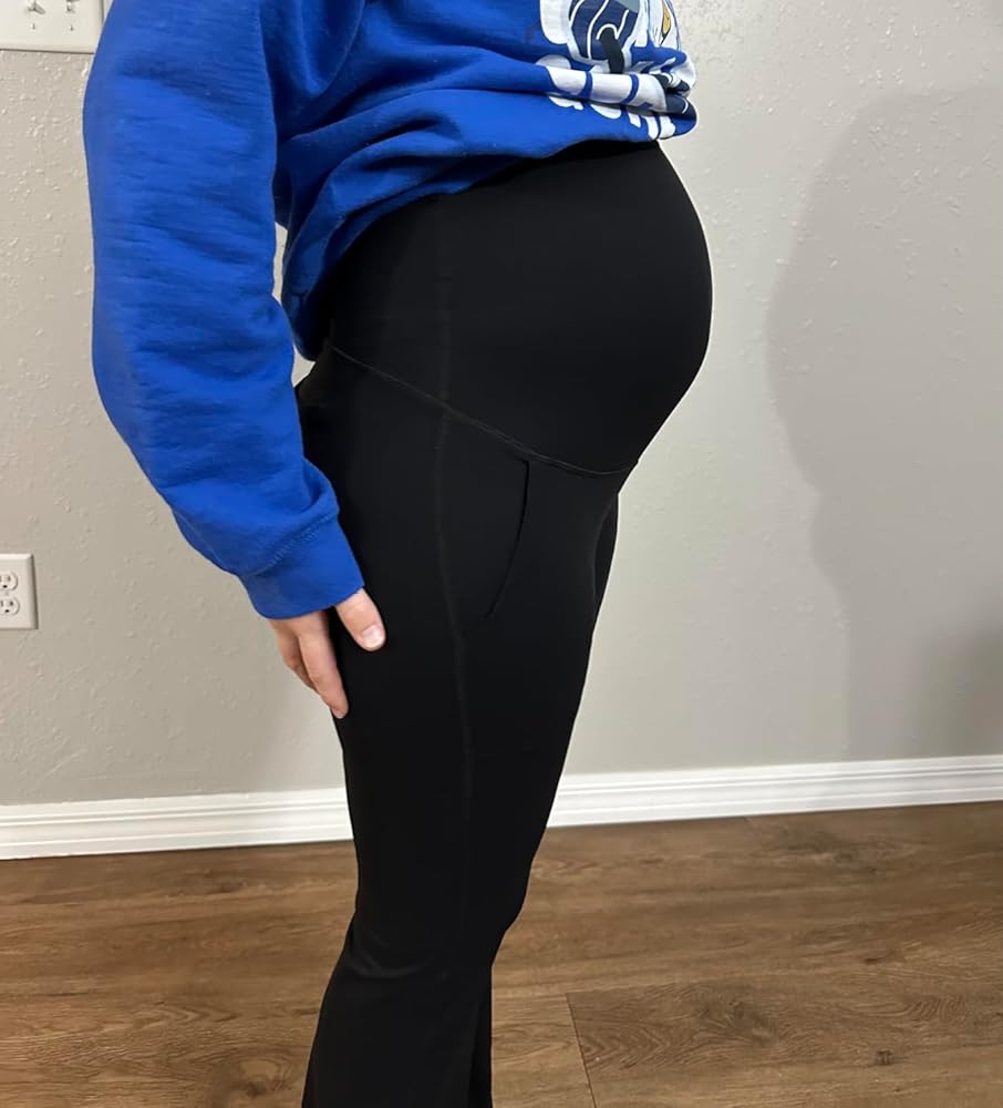 These Leggings are so comfortable! They even come with Pockets! They are an absolute wardrobe essential for any expectant mother seeking comfort, style, and practicality. From the very first wear, I could tell that these leggings were thoughtfully designed to accommodate a growing bump while maintaining a polished, versatile look suitable for both casual and professional settings. The over-the-belly design is one of the standout features. The waistband sits comfortably above the stomach, providing gentle support without feeling tight or restrictive. Even after hours of wear, there’s no pinching or rolling, which is often a problem with maternity pants. The stretchy fabric adapts to the changing shape of the belly, offering a flattering silhouette while ensuring maximum comfort throughout the day. The flare leg cut is both stylish and functional. Unlike traditional maternity leggings that can feel too casual or clingy, these flare leggings add a touch of sophistication and elongate the legs, making them appropriate for work, yoga, or casual outings. The flare also allows for better airflow and movement, so they feel less constricting than straight-leg or skinny maternity pants. The addition of functional pockets is a huge bonus. They’re deep enough to hold small essentials like a phone, keys, or ID card, which is particularly useful for busy moms on the go. It’s rare to find maternity leggings that combine both comfort and functional details, and these strike that balance perfectly. The fabric itself is soft, breathable, and durable. It feels luxurious against the skin while remaining strong enough to withstand daily wear and frequent washing without losing shape or color. The dark gray color is versatile, pairing easily with tunics, blouses, or longer sweaters for a polished and professional appearance. Comfort and style aren’t sacrificed for practicality; these leggings allow for a full range of motion, whether doing light exercise, running errands, or simply lounging at home. The XX-Large Tall size is generous and accommodating, providing both length and coverage without being baggy or overwhelming. Overall, the Maternity Flare Leggings with Pockets are a beautifully designed, high-quality piece that every pregnant woman should consider. They combine comfort, style, functionality, and versatility in a way that makes them suitable for work, casual outings, or yoga sessions. These leggings prove that maternity wear doesn’t have to be frumpy or restrictive; they’re supportive, flattering, and practical, making them a standout choice for expectant mothers who want to feel confident and comfortable throughout their pregnancy. The leggings are thick so you cant see through them and they are well priced for the quality!