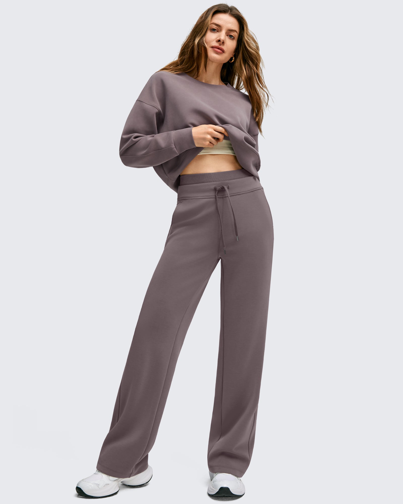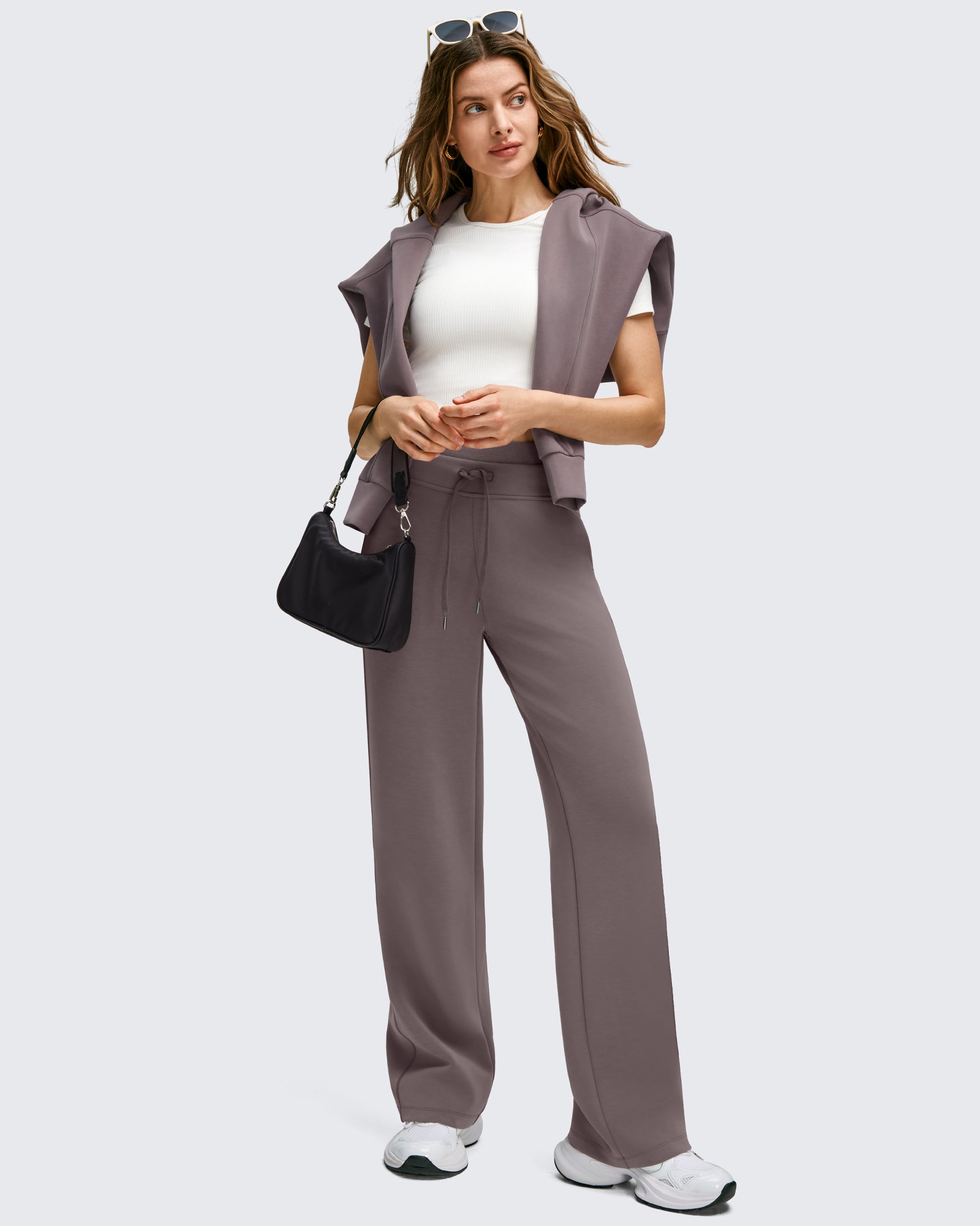 Smoofit Wide Leg Drawstring Double Layer Waist Pants