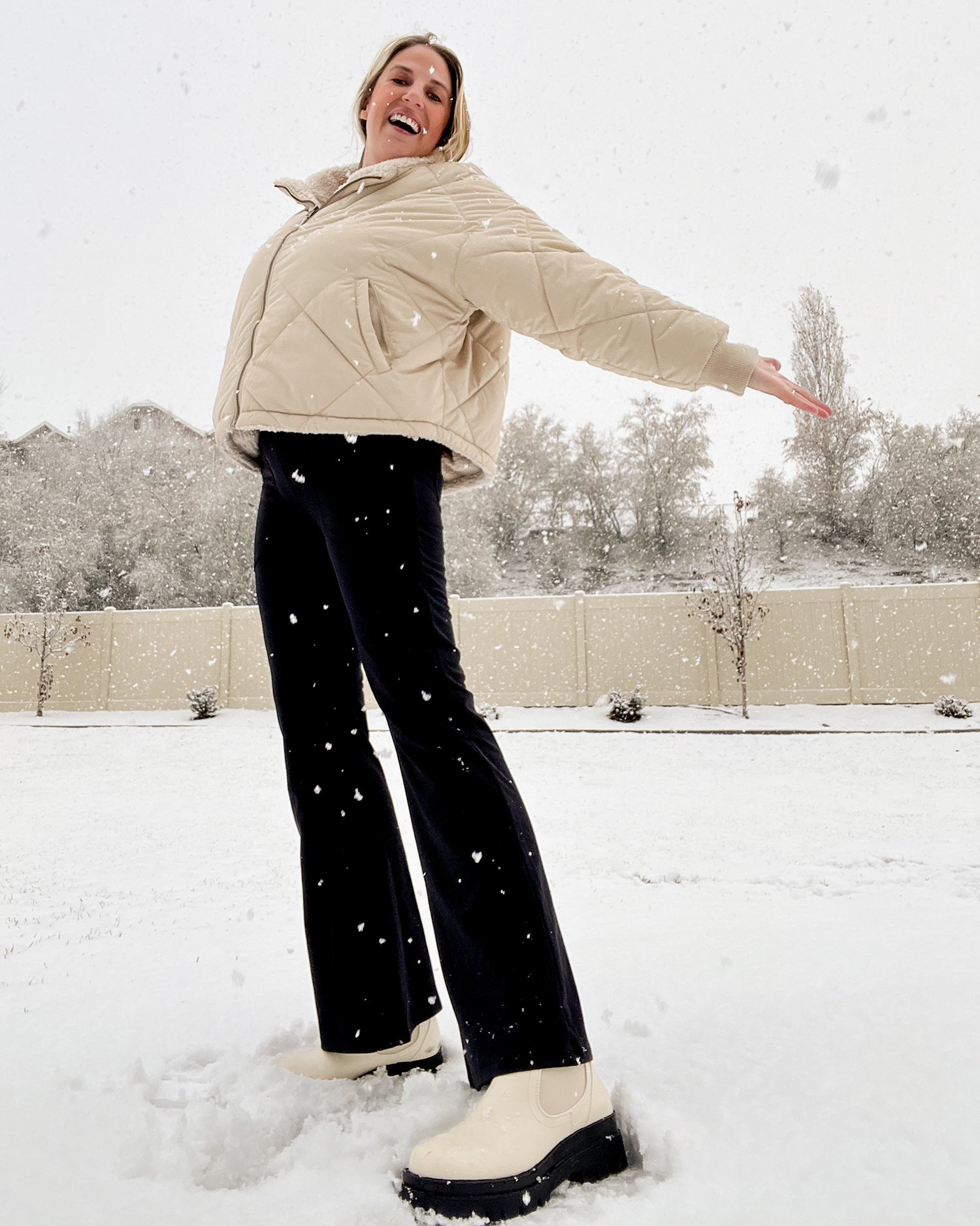 Polished comfort.Fleece-lined flare pants with a high-rise fit that moves seamlessly from commute to coffee.