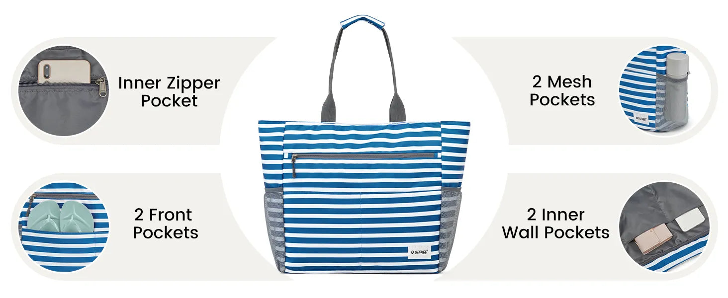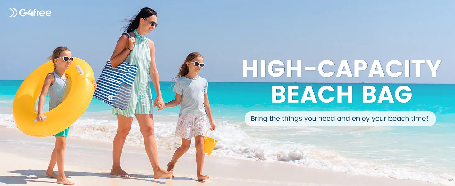 • 【Large Capacity】G4Free beach bag stands out for its large size, 21.6"*6.7"*15.4". Extra gift small purse. It can easily accommodate all the necessary beach essentials for a family of four. And This is a 2-in-1 design bag. The large tote bag can be folded into a small bag, which is very convenient to carry.