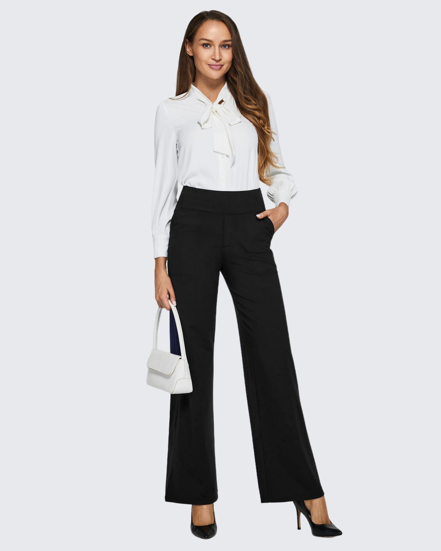 I love that I could order the length that I need because most pants are way too long for me. These pants look really nice and are made of comfy material, but I don’t like the high waist. I wish they were available with mid-rise waist.