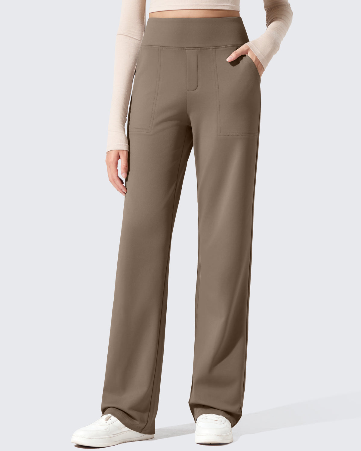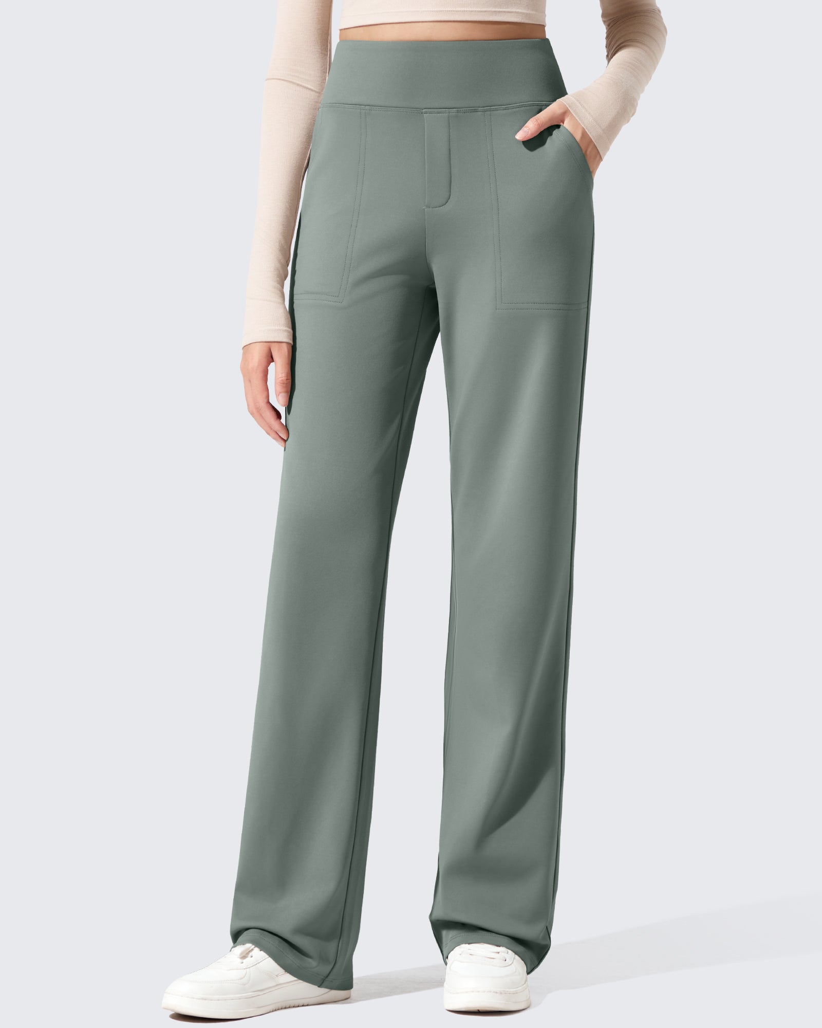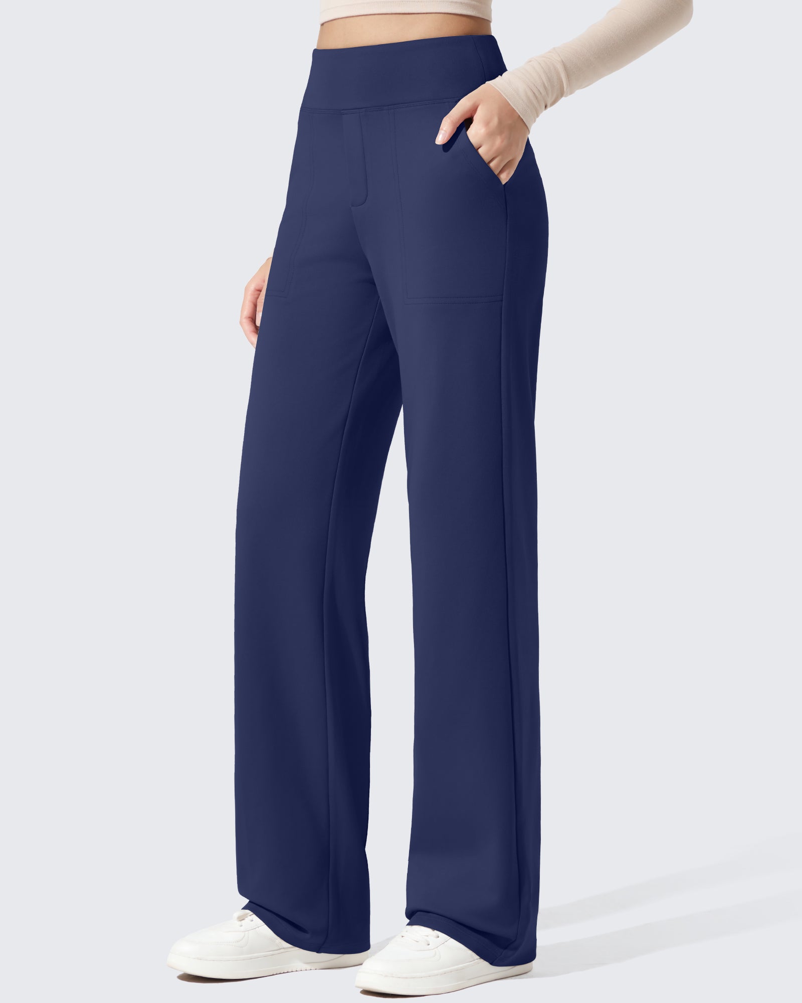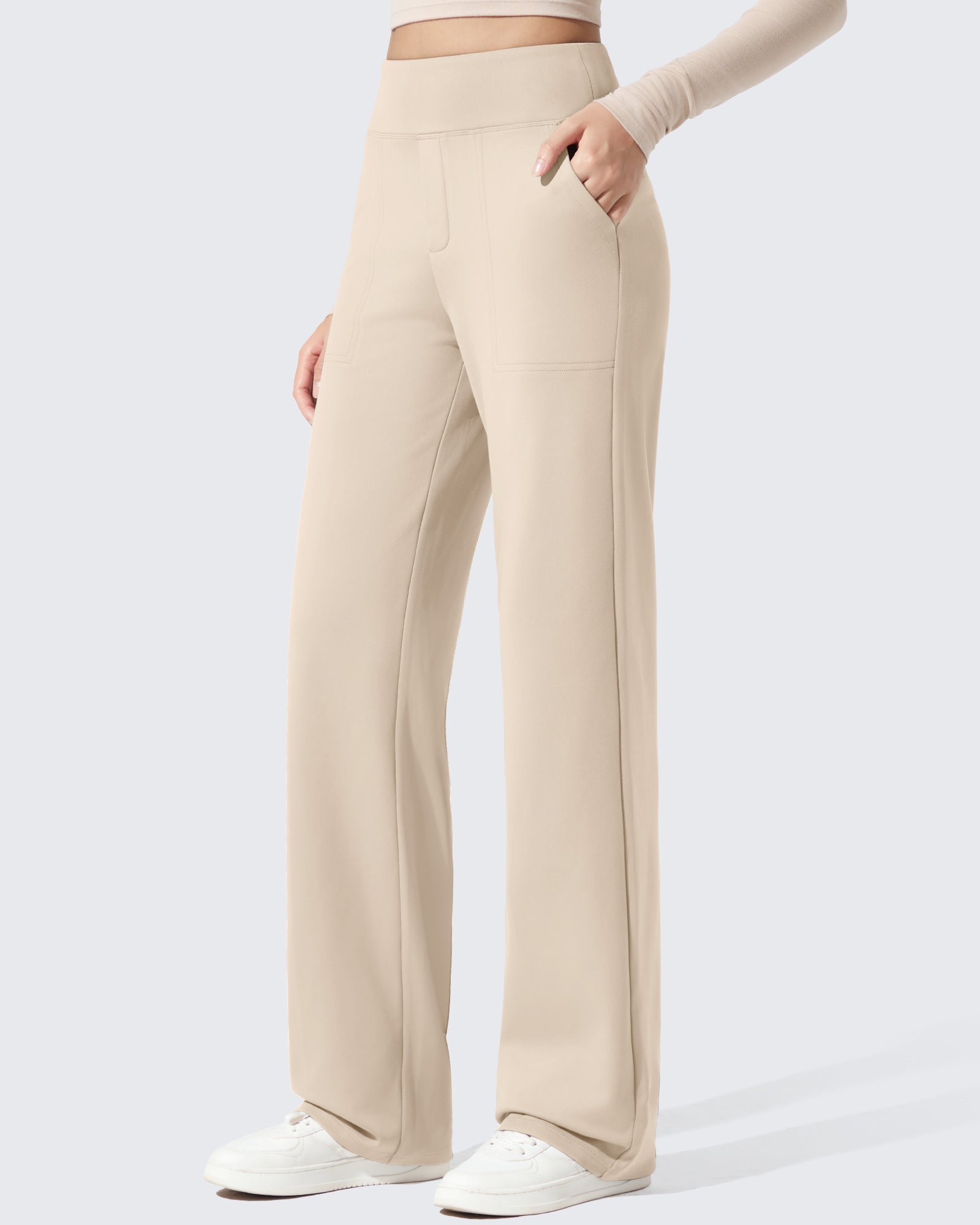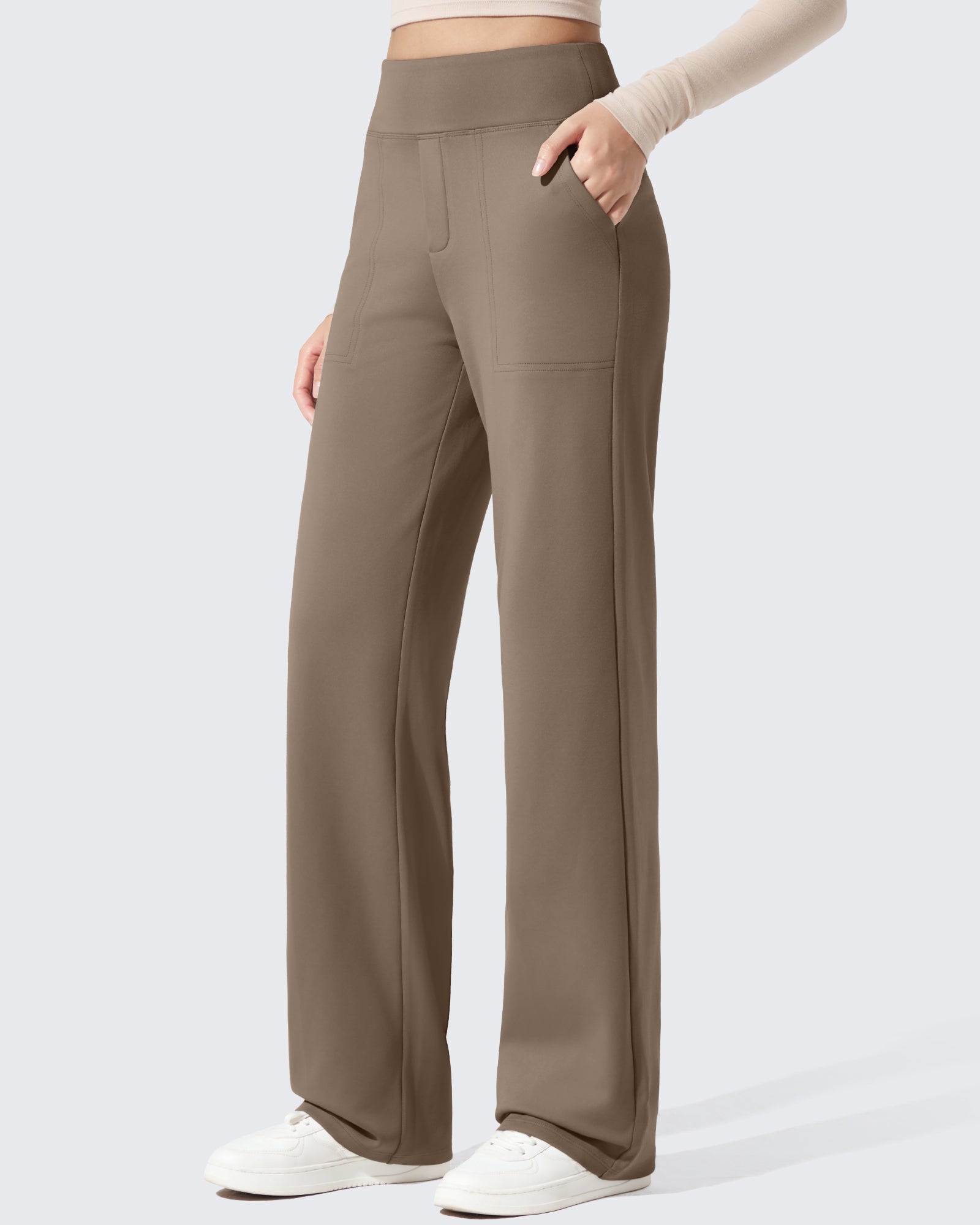 Polish meets warmth. High-waisted dress pants with a fleece lining that feels soft, never bulky.