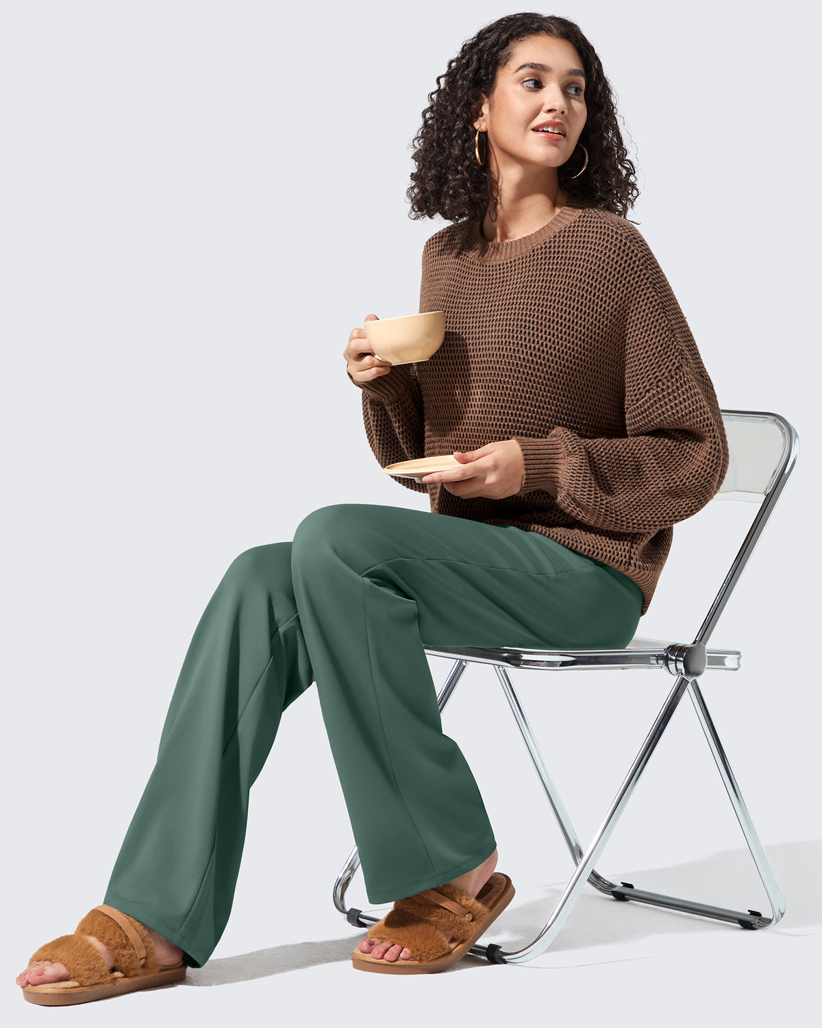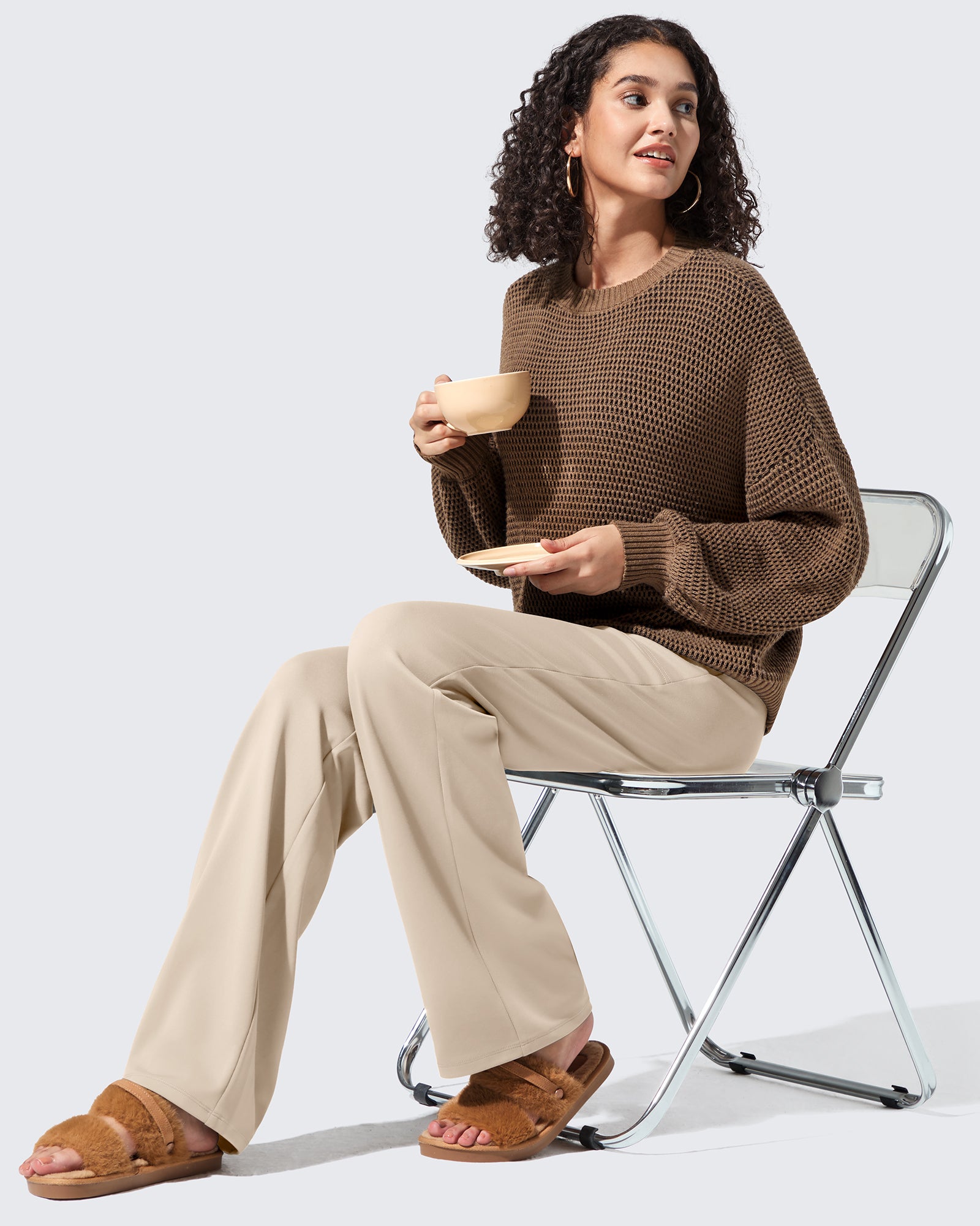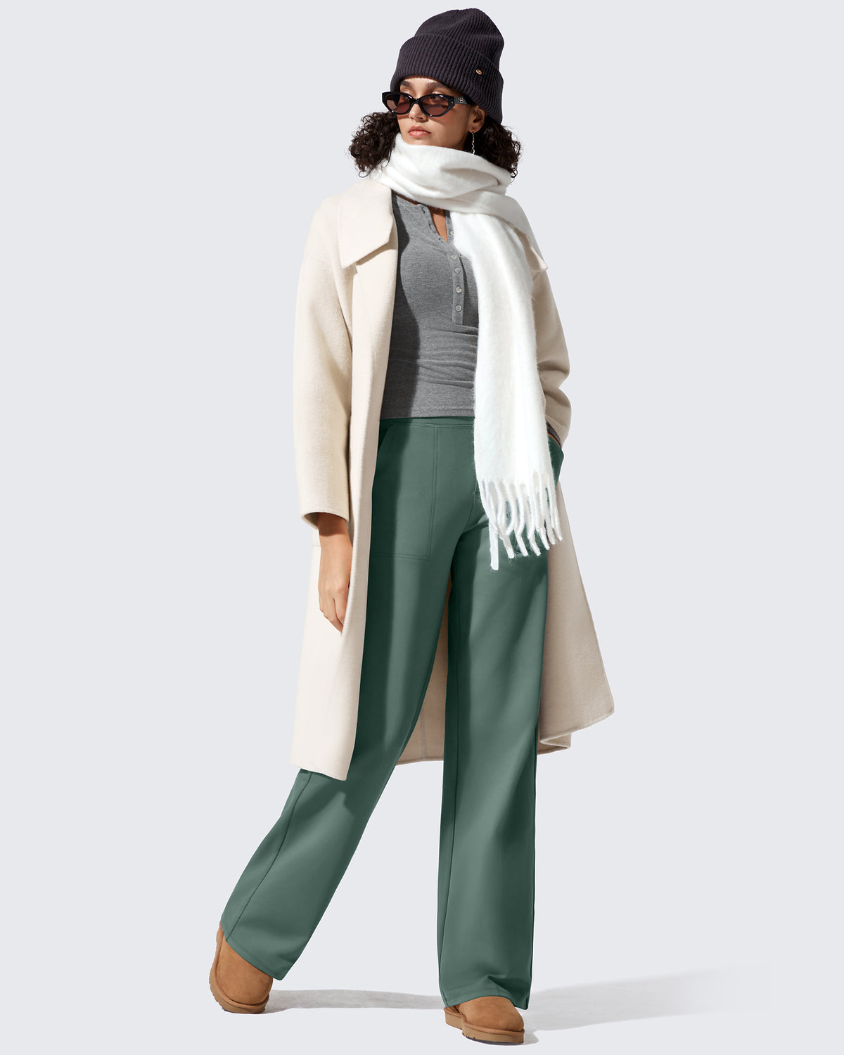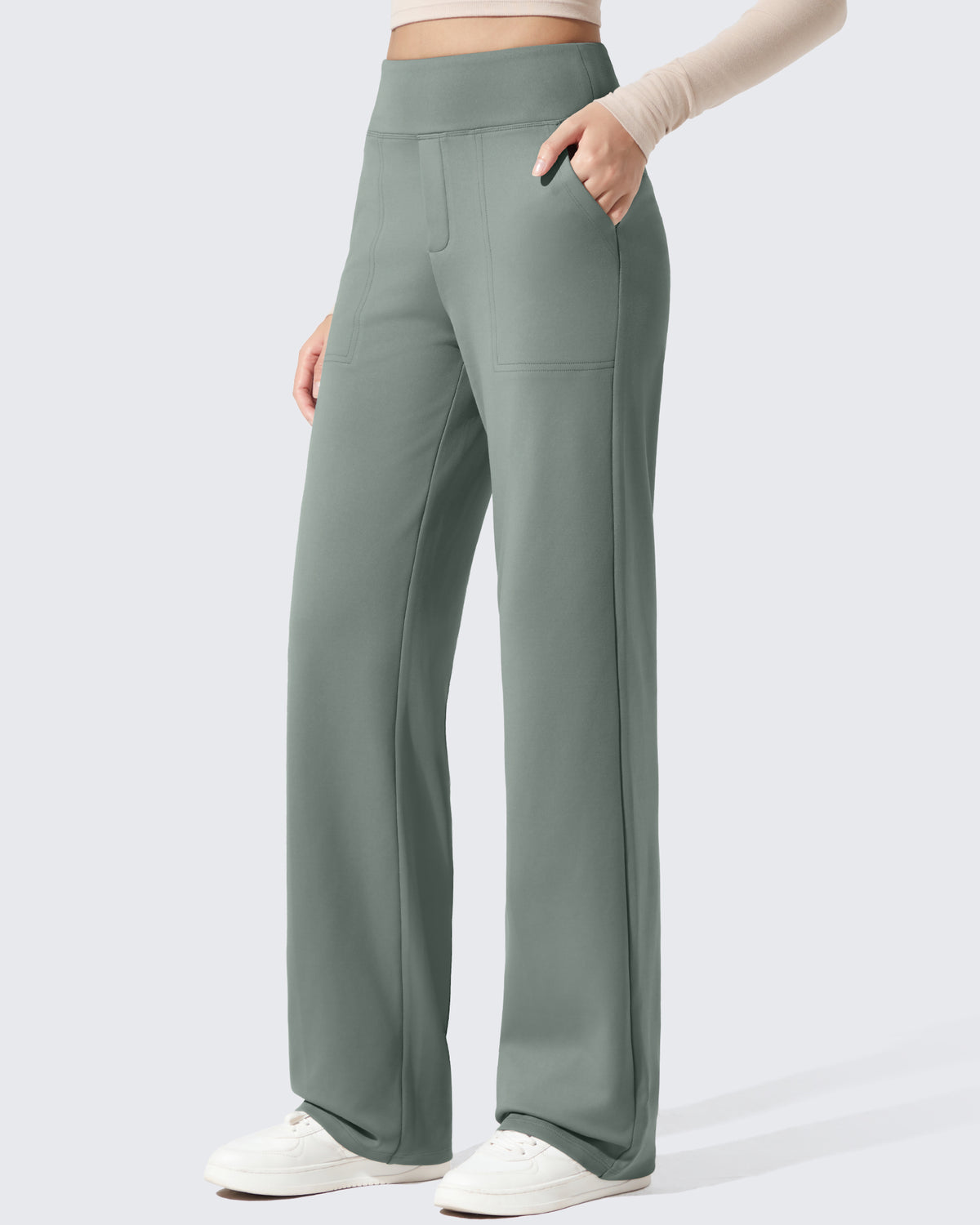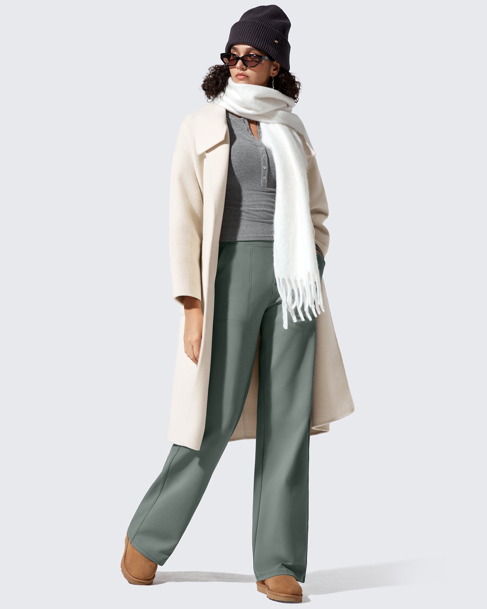 Polish meets warmth. High-waisted dress pants with a fleece lining that feels soft, never bulky.