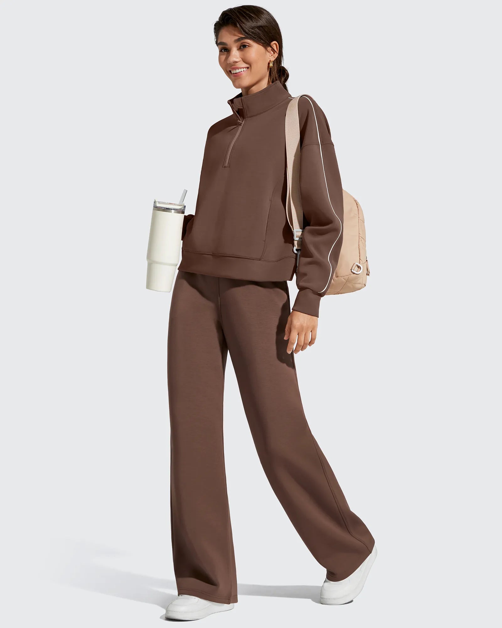 Smoofit Elastic Drawstring Fleece Lined Wide Leg Sweatpants