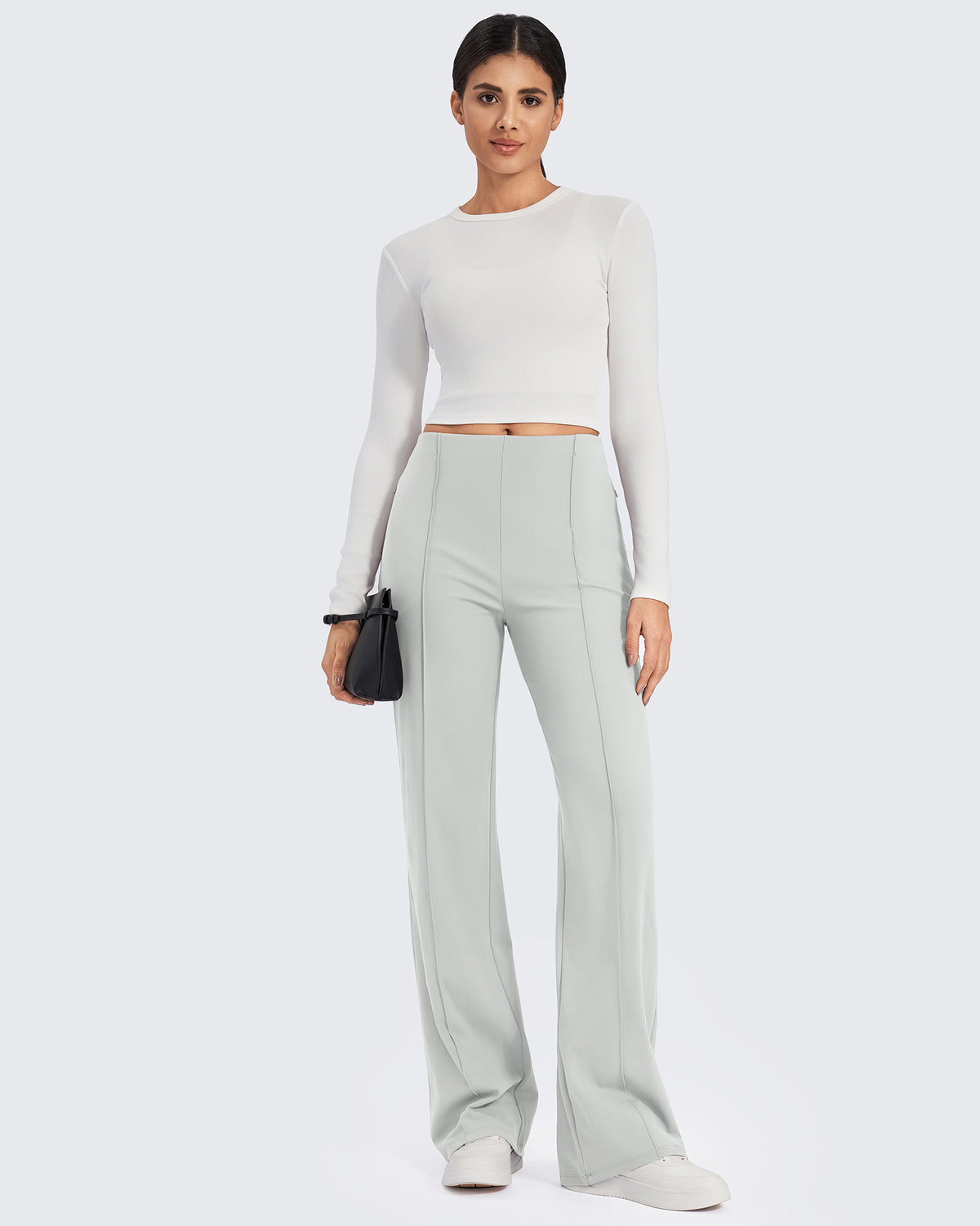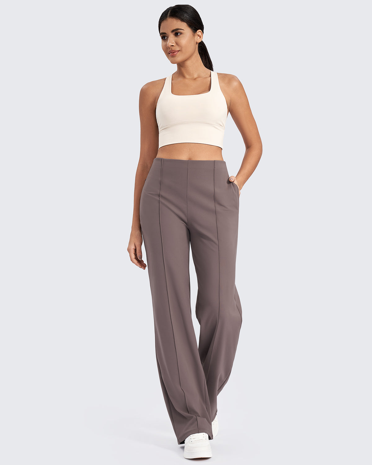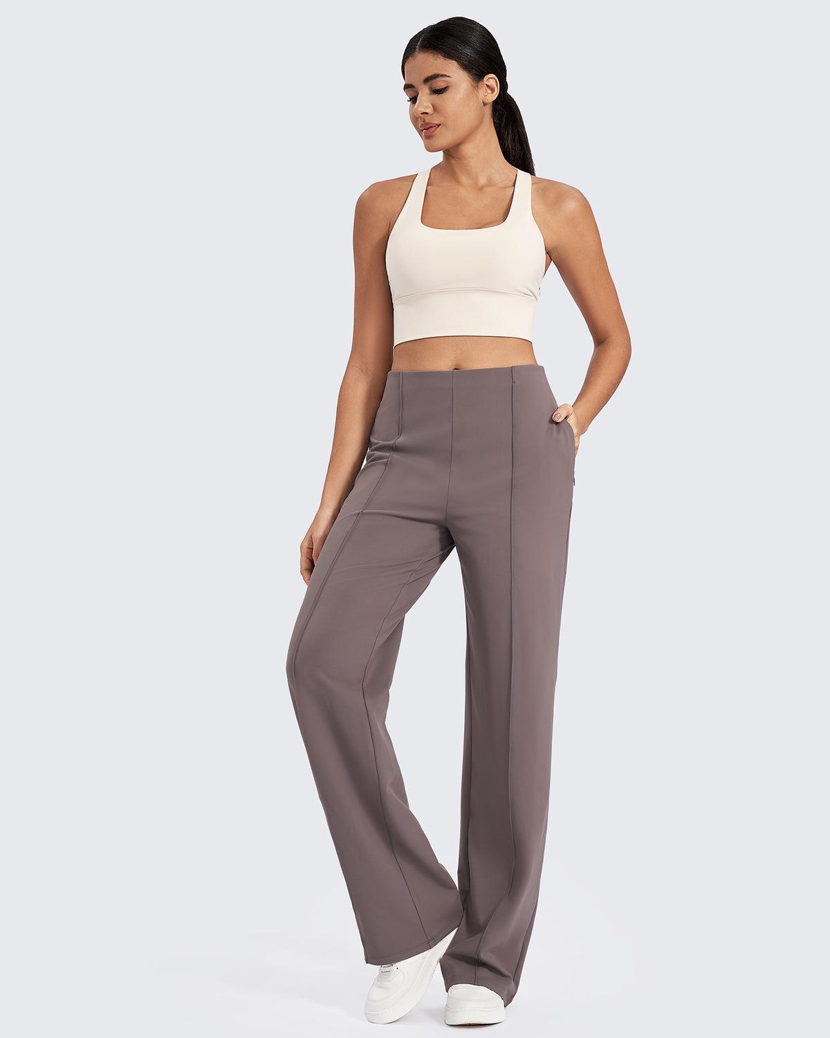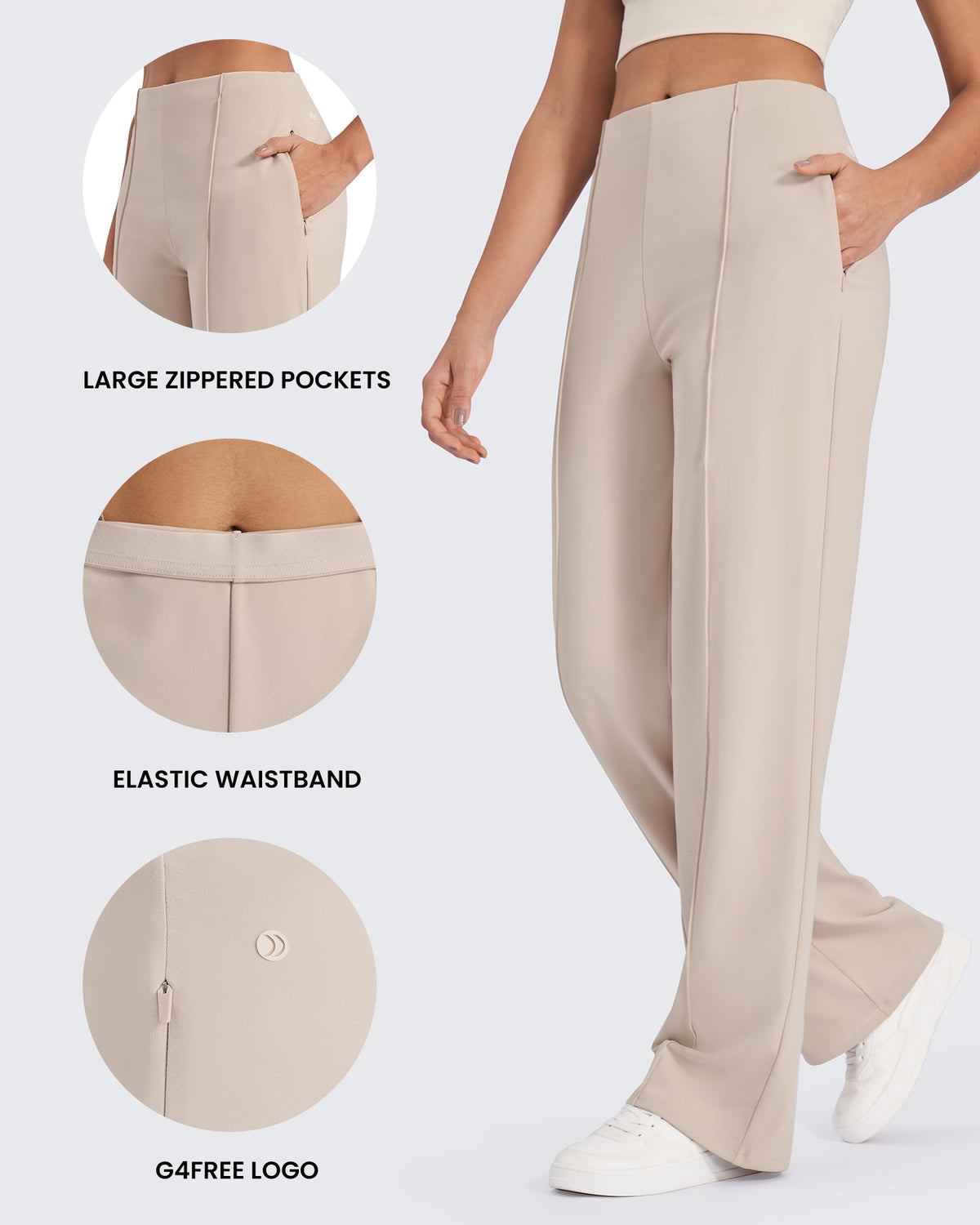 Office polish. Weekend comfort. These wide-leg pants feature classic front pleats, a high-rise waist, and flowy fabric, delivering tailored style.