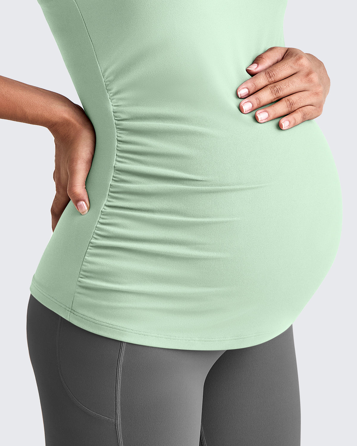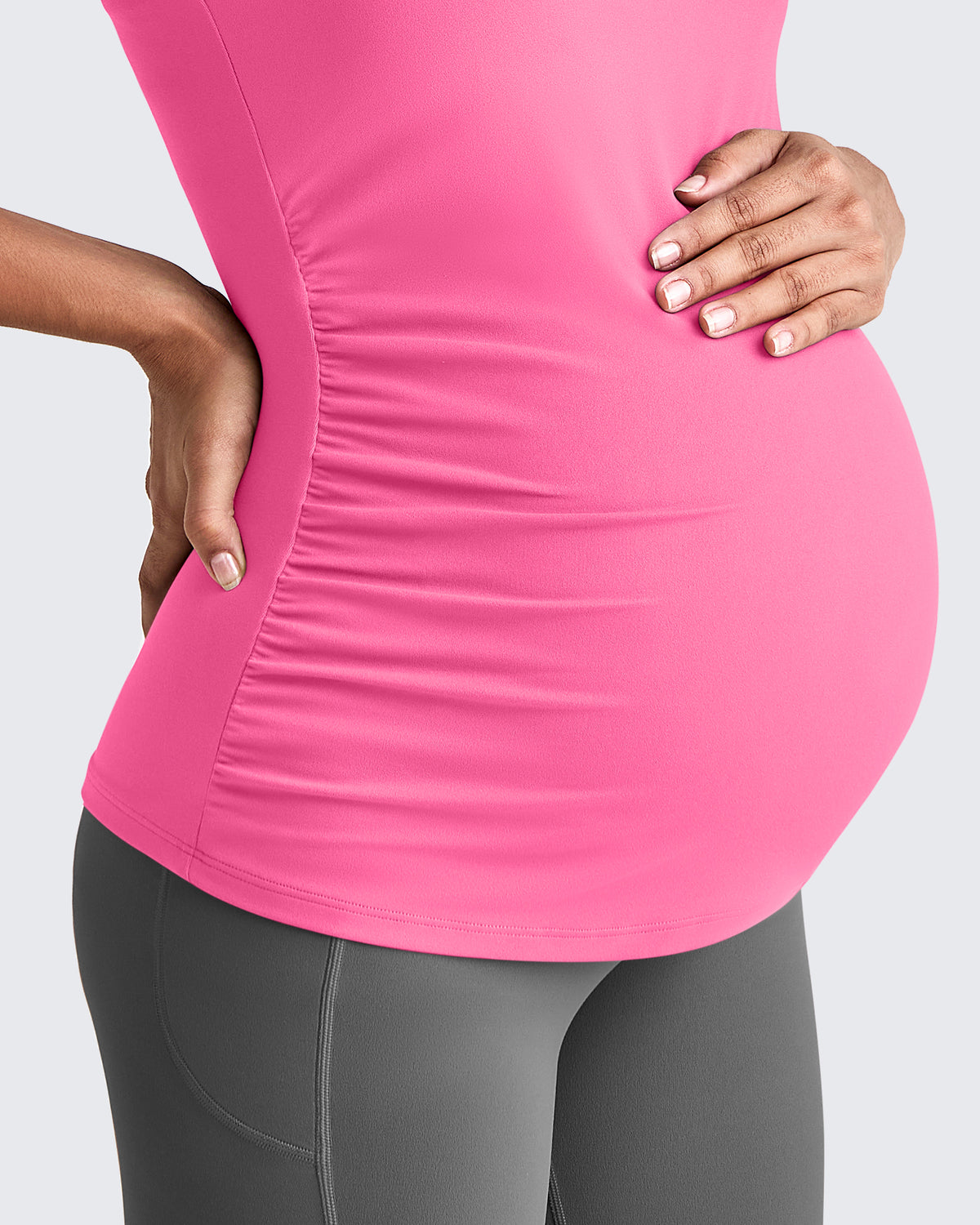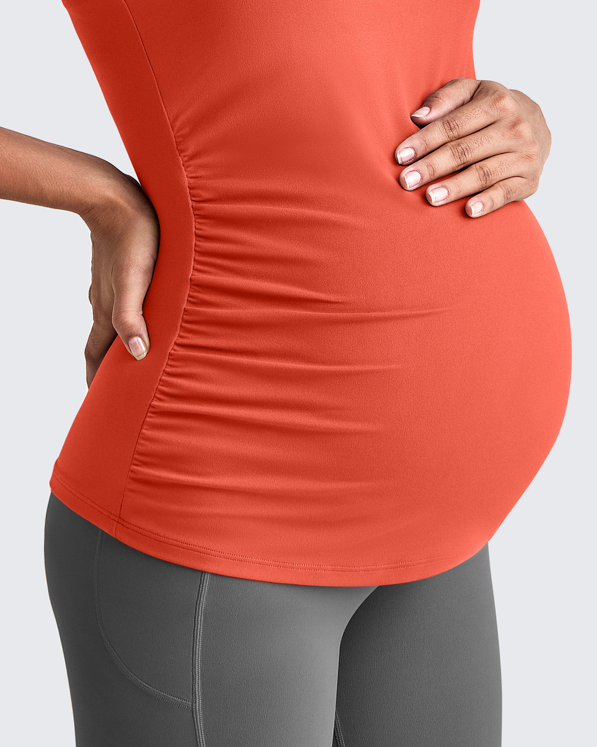 Bump-hugging comfort. Designed for your pregnancy journey—gentle stretch, and side ruching that grows with your bump