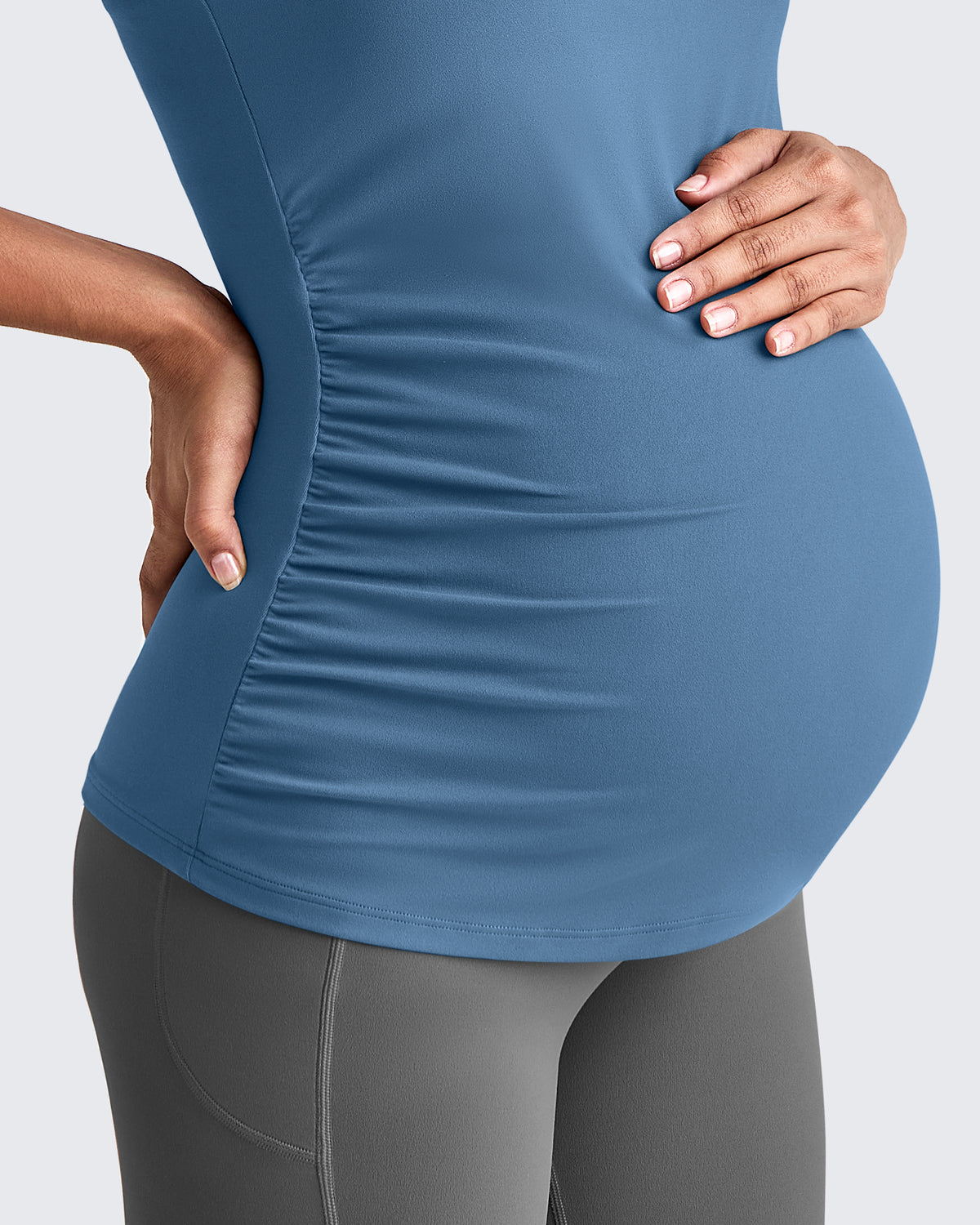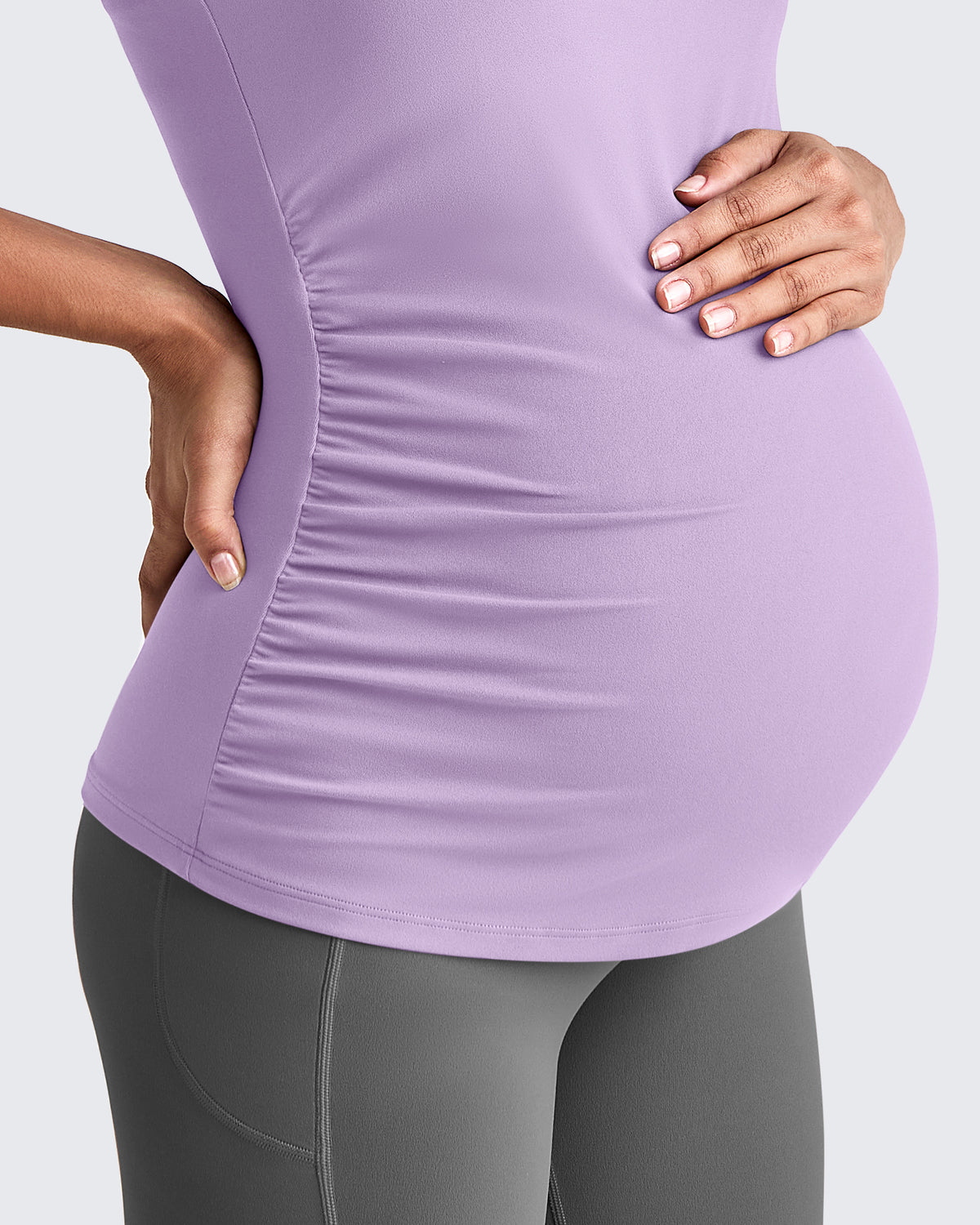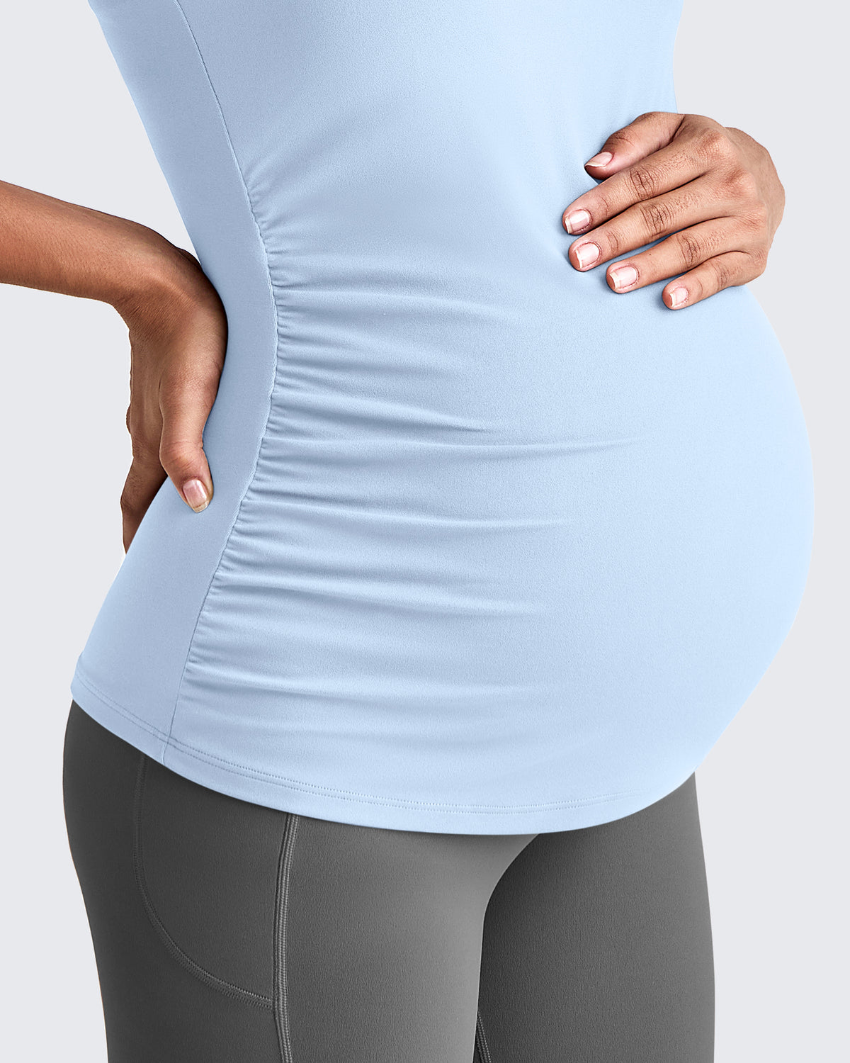 Bump-hugging comfort. Designed for your pregnancy journey—gentle stretch, and side ruching that grows with your bump