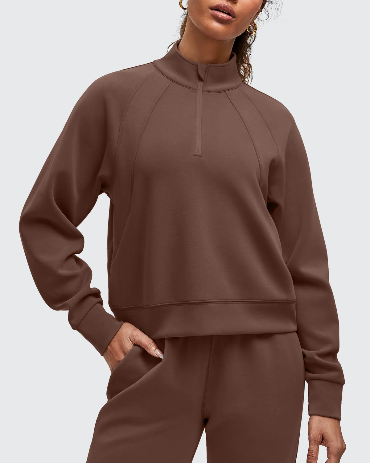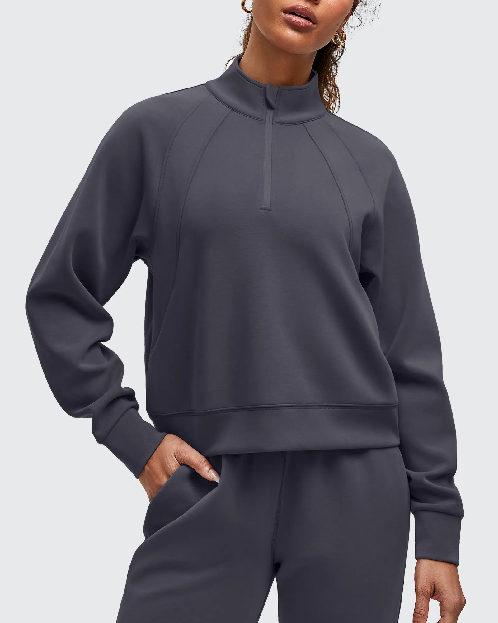 Smoofit Half-Zip Pullover Mock Neck Pockets Sweatshirts