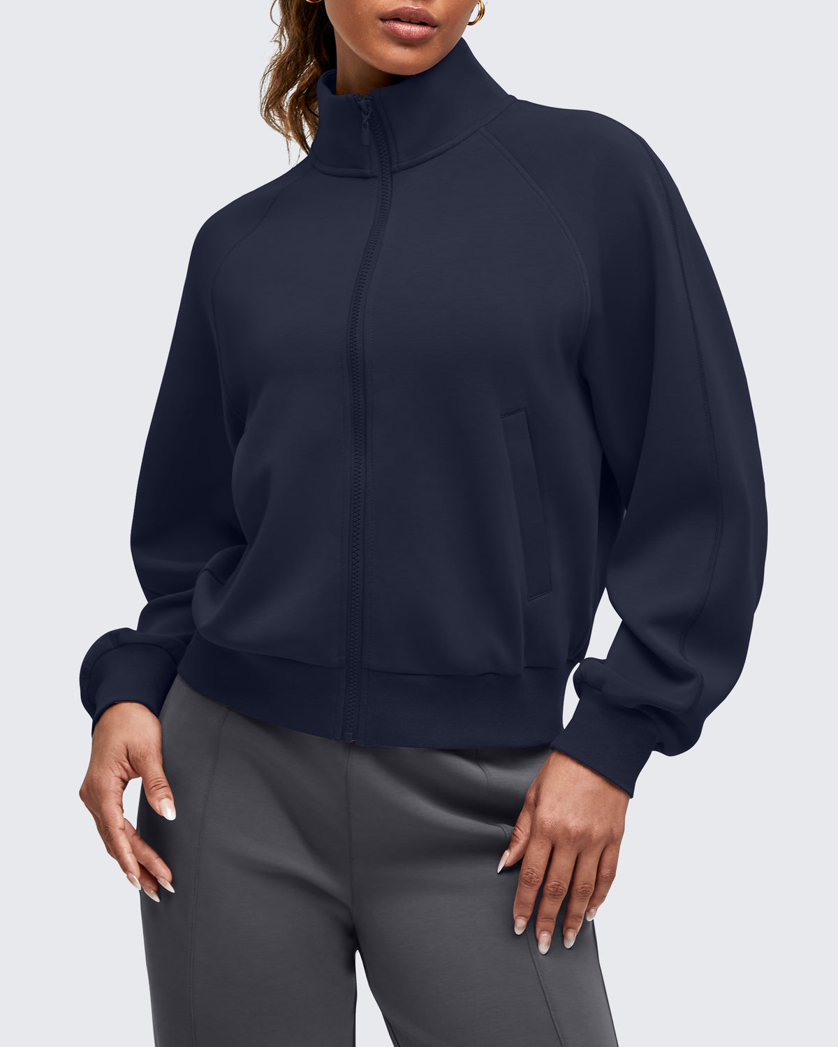 Smoofit Mock Neck Zip Up Pockets Jackets
