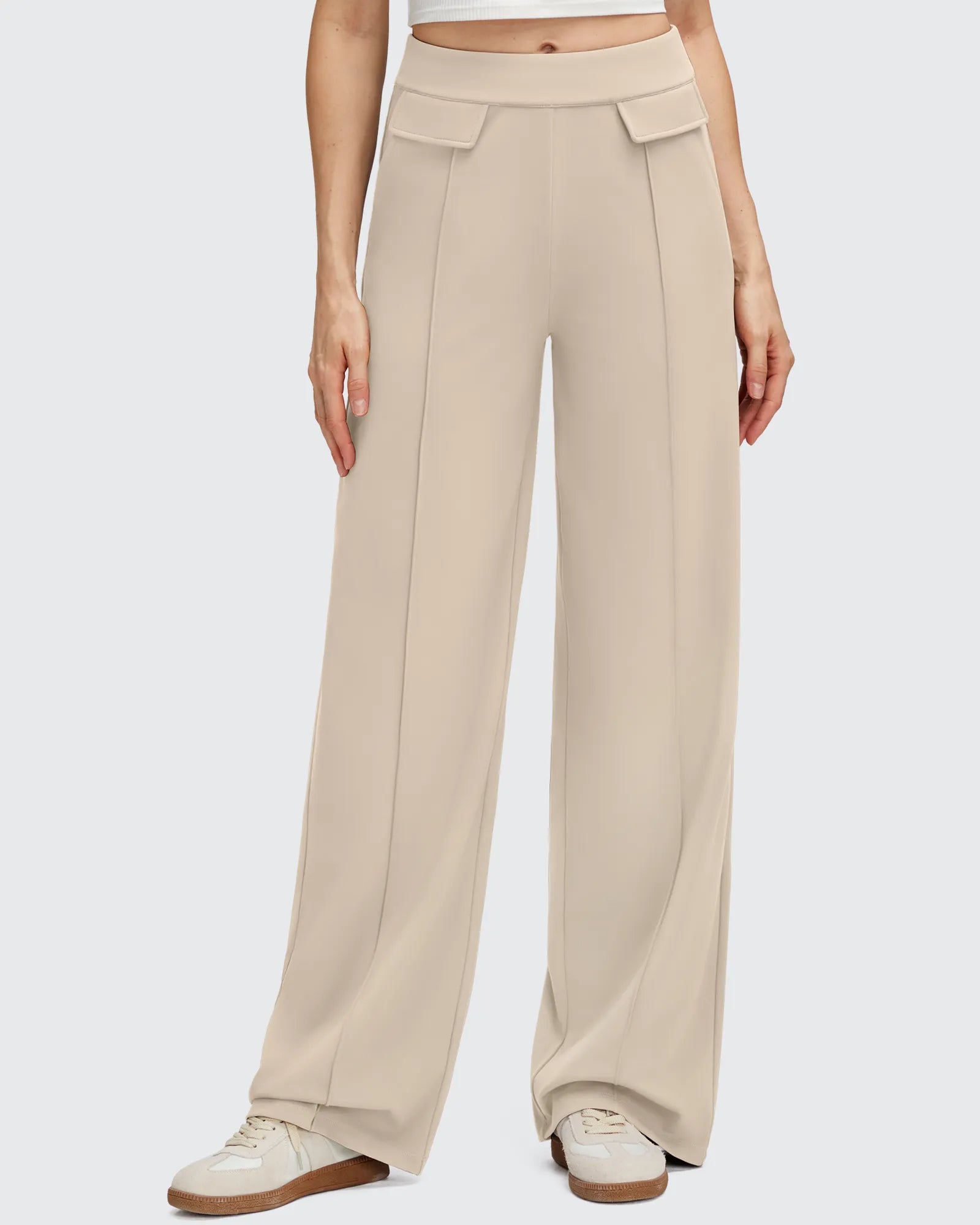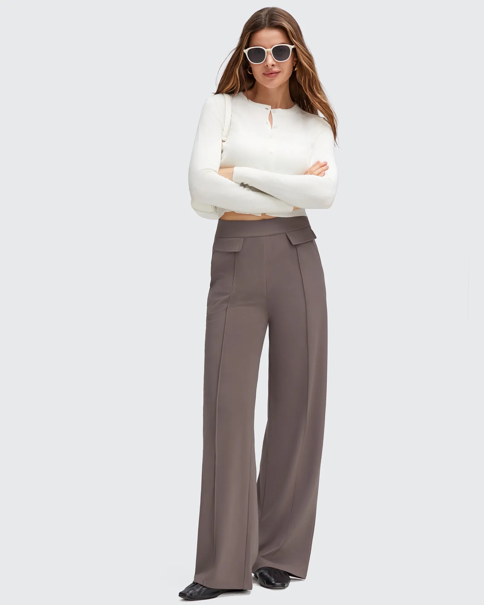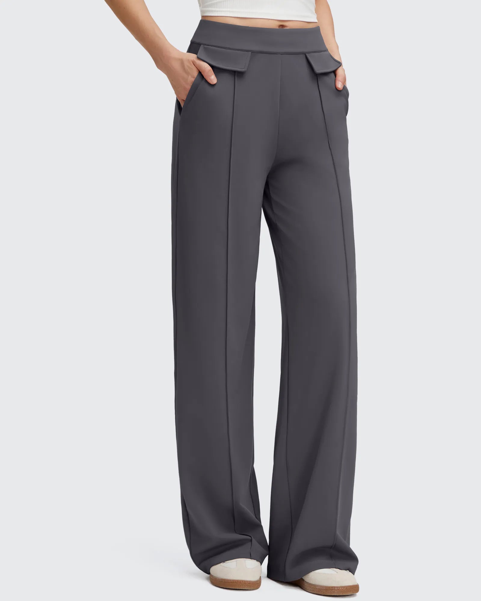 EverGoing Flap Pockets Wide Leg Dressy Pants