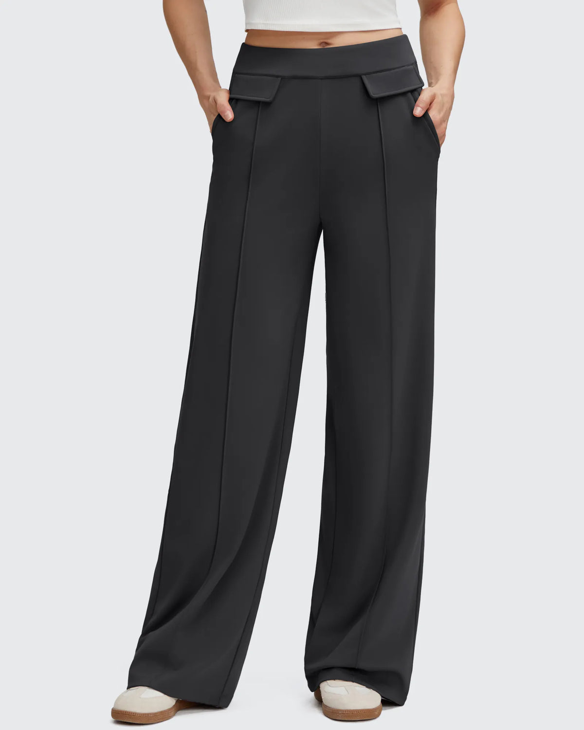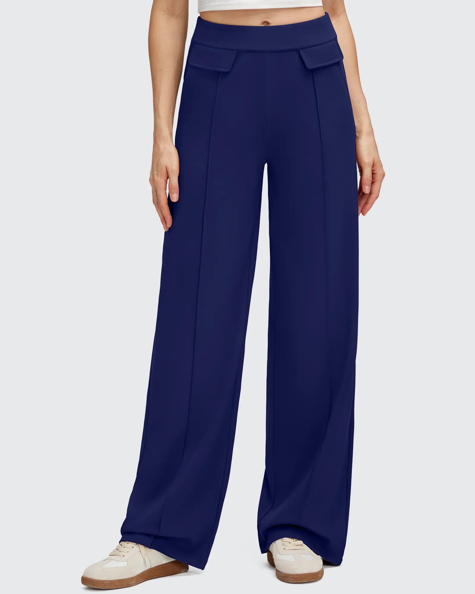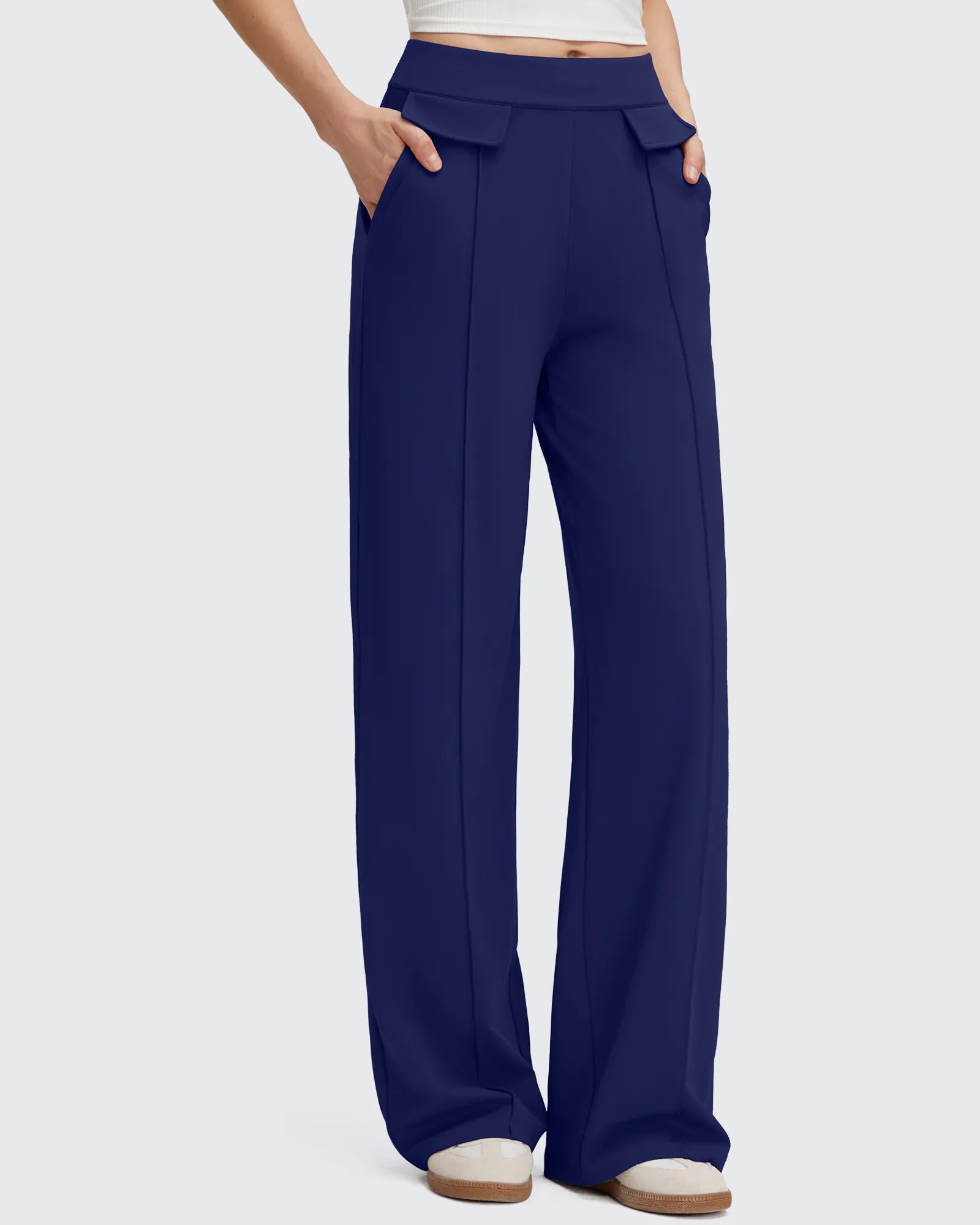 EverGoing Flap Pockets Wide Leg Dressy Pants