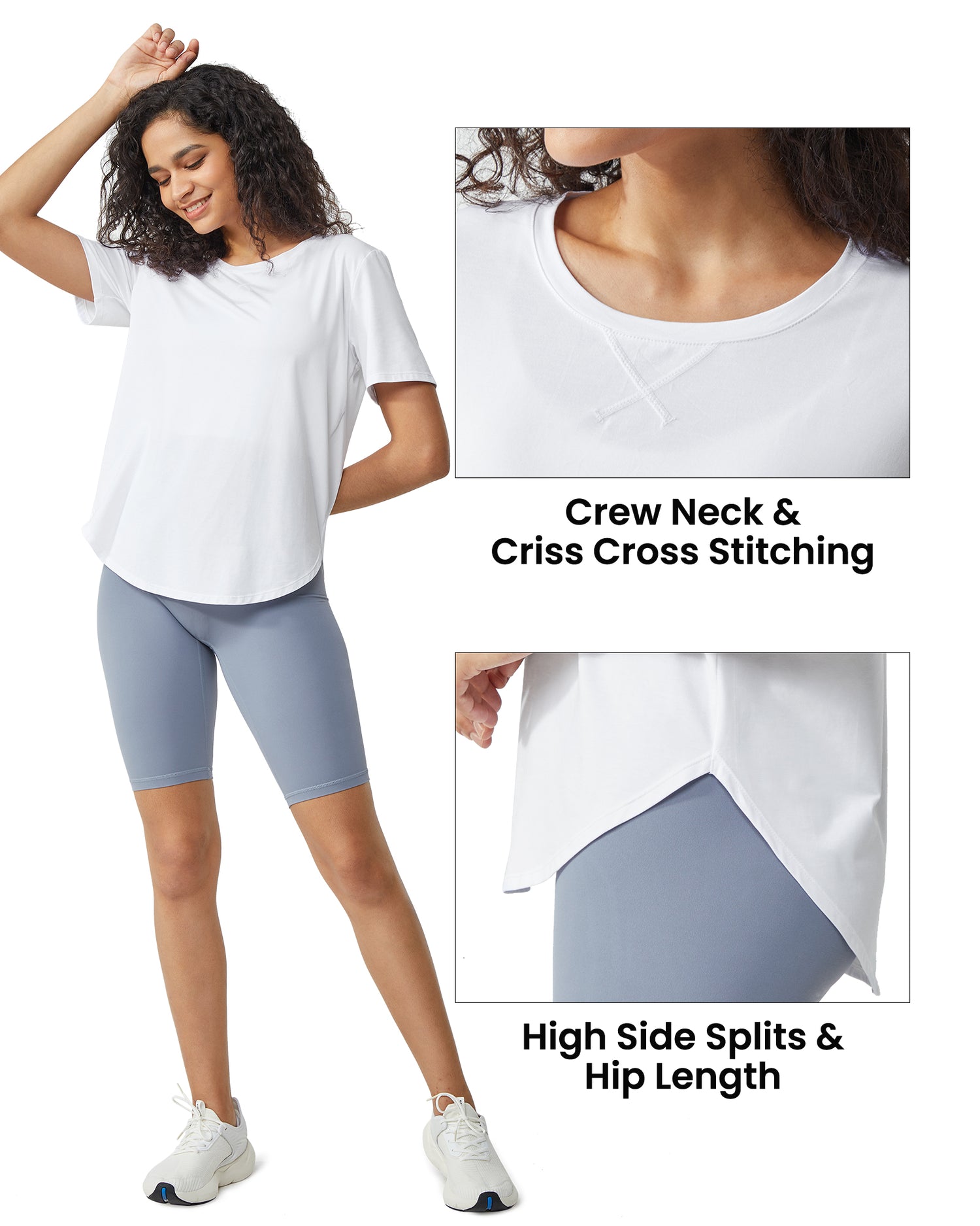 - Loose Fit Women Athletic Shirts: A relaxed loose fit allows max stretching fitness moves without being constricted or stuffy.