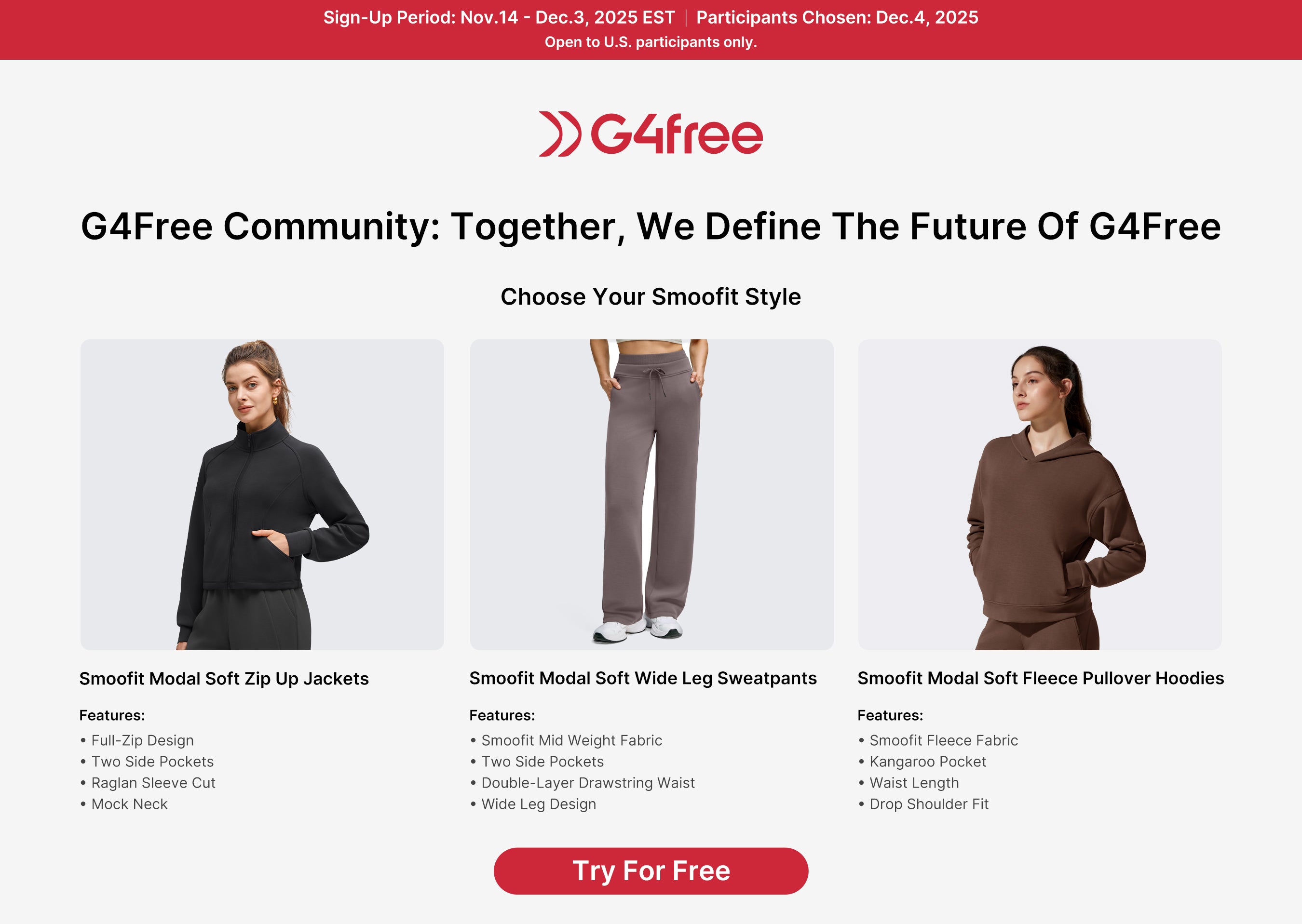 To stay eligible for future product trials, please submit your feedback within 30 days of receiving your item. Missing the deadline may affect your chances of being selected for upcoming G4free campaigns.