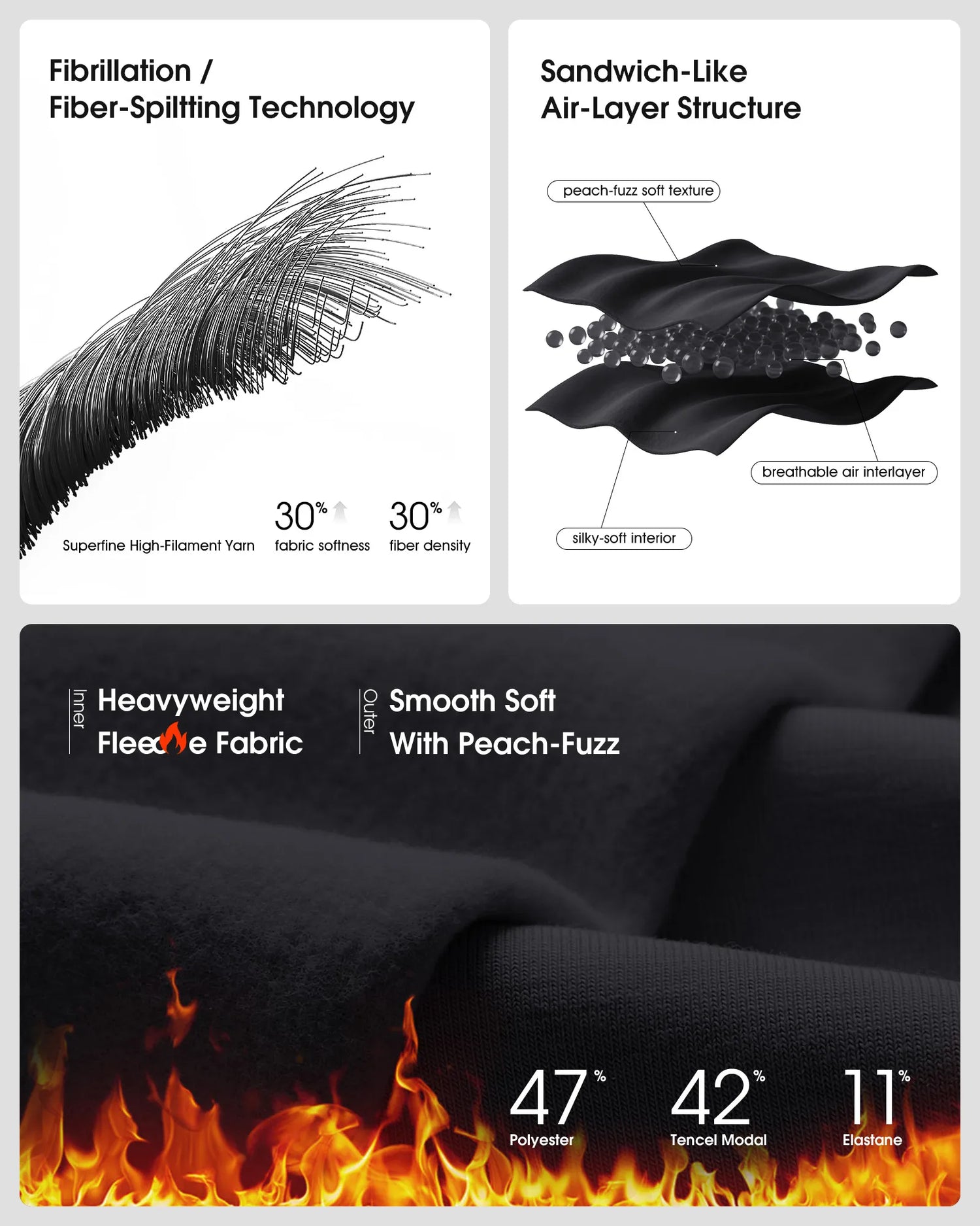 • Smoofit heavyweight fleece with silky-smooth peach-fuzz texture
